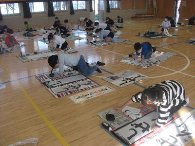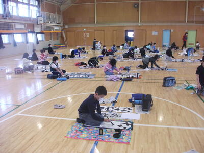 1月11日、12日に3年生~6年生が体育館で競書会を行いました。